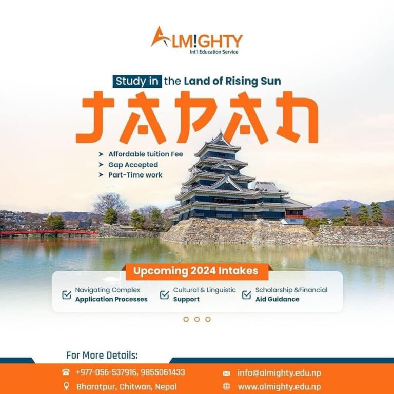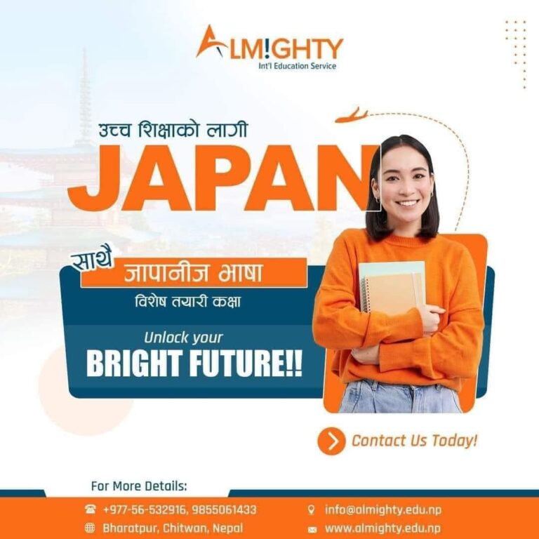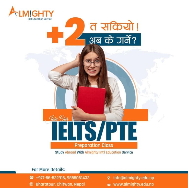 Almighty International Education Service Pvt. Ltd. was founded under the motto “Education Leads the World.” Situated in Bharatpur, Chitwan, in the heart of Nepal, it stands as one of the premier academic institutions focused on excellence in the country. Over the years, it has established a strong reputation in the education sector by offering high-quality education and career counseling services to students. Additionally, it ranks among the top educational institutions in Nepal for study abroad and career counseling programs. Noteworthy features contributing to its success include an aesthetically pleasing environment, a well-equipped library, internet access, collaborative opportunities, and effective administrative management. The institution also offers a variety of language courses, test preparation services, and comprehensive guidance for students.