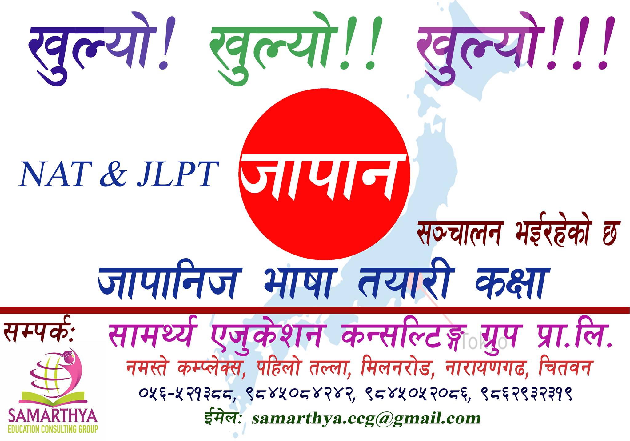 Samarthya Education Consulting Group is an educational consultancy situated on the first floor of Namaste Complex, Milan Road, Narayangarh, Chitwan. We facilitate opportunities for all +2 graduates and students pursuing higher degrees to continue their studies abroad.